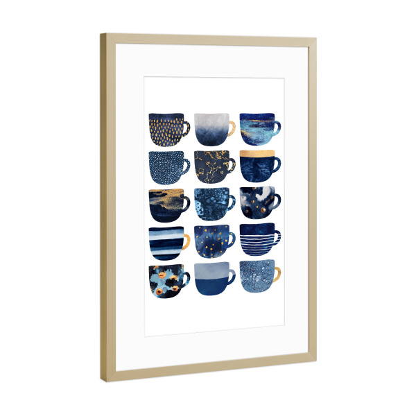 Poster mit Rahmen Gold "Pretty Blue Coffee Cups" artboxONE - Essen & Trinken
