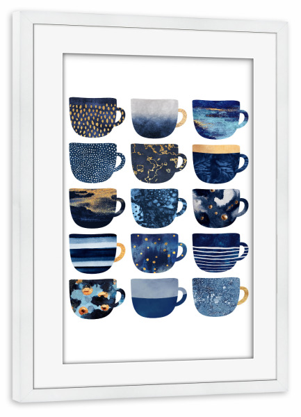 Poster mit Rahmen weiß "Pretty Blue Coffee Cups" artboxONE - Essen & Trinken