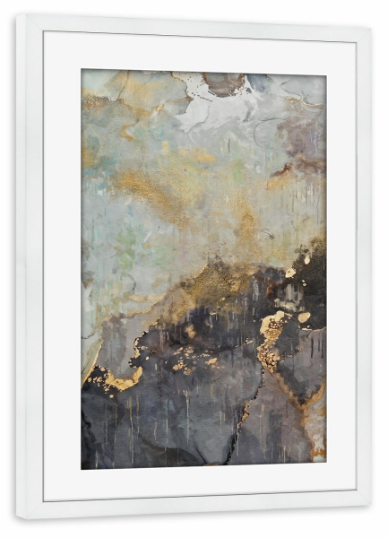 Poster mit Rahmen weiß "Spark Abstract Ink" artboxONE - Abstrakt - Blue,Blau,Abstract,Abstrakt,Bunt,Colorful