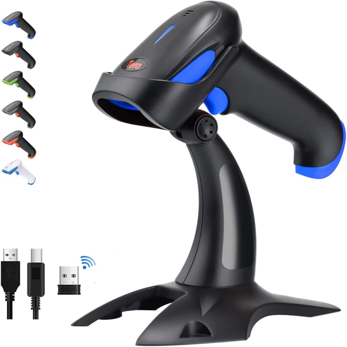 Inateck 1D&2D Kabelloser Barcode Scanner, Bluetooth 5.0, 2.4Ghz Intelligente Station, Bildschirm-Scannen