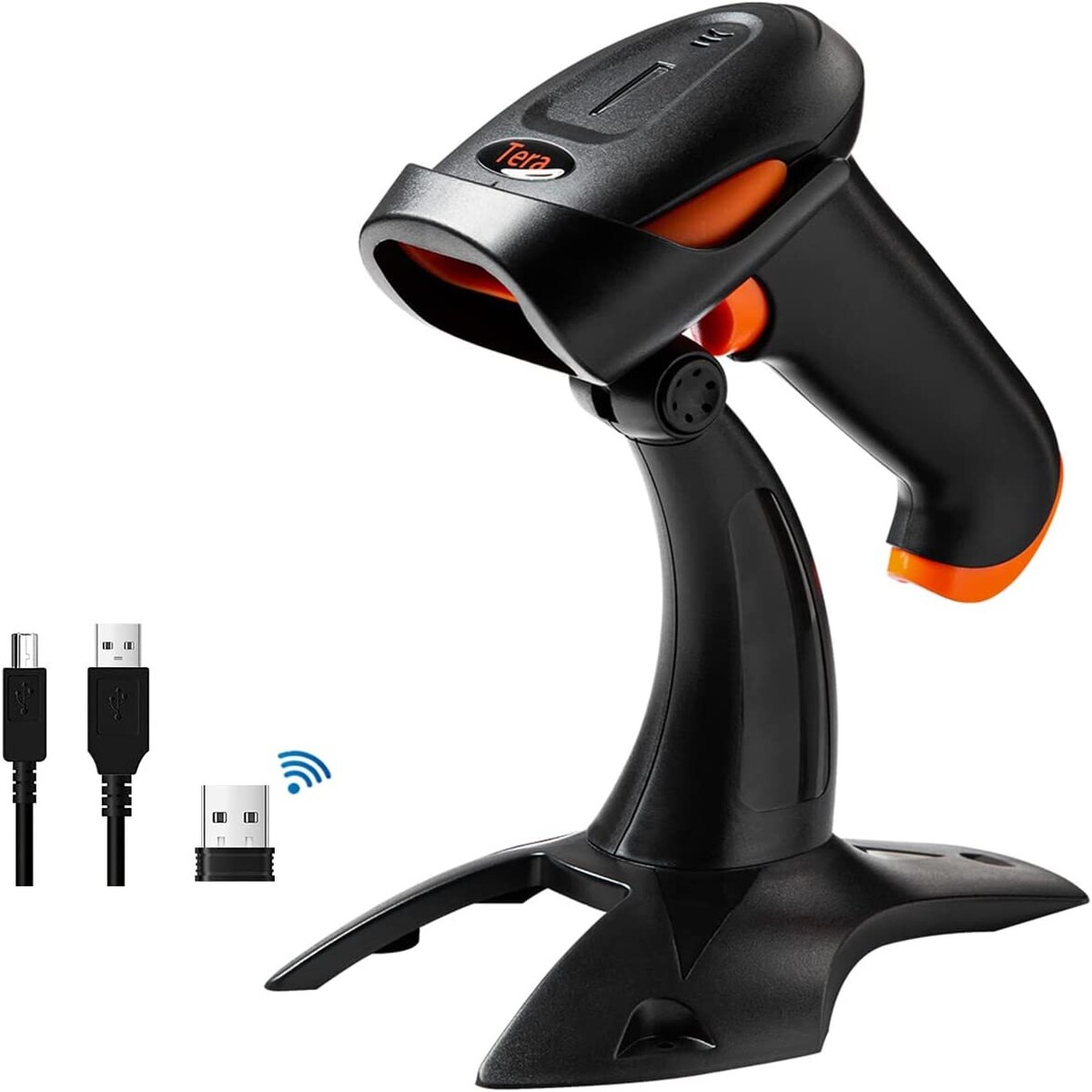 Tera Pro kabelloser Barcode-Scanner, Bluetooth, QR-Code, Ständer, 2.200 mAh, HW0002 Schwarz 1 Stück