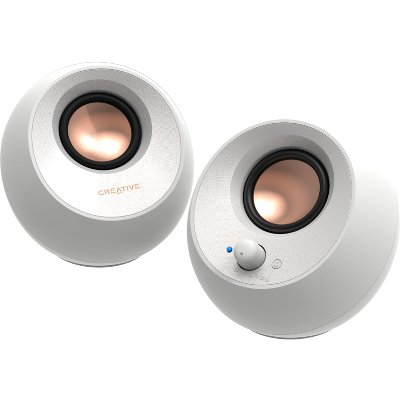 Creative Pebble Pro PC-Lautsprecher, weiß, Klinke, USB-A/C, Bluetooth