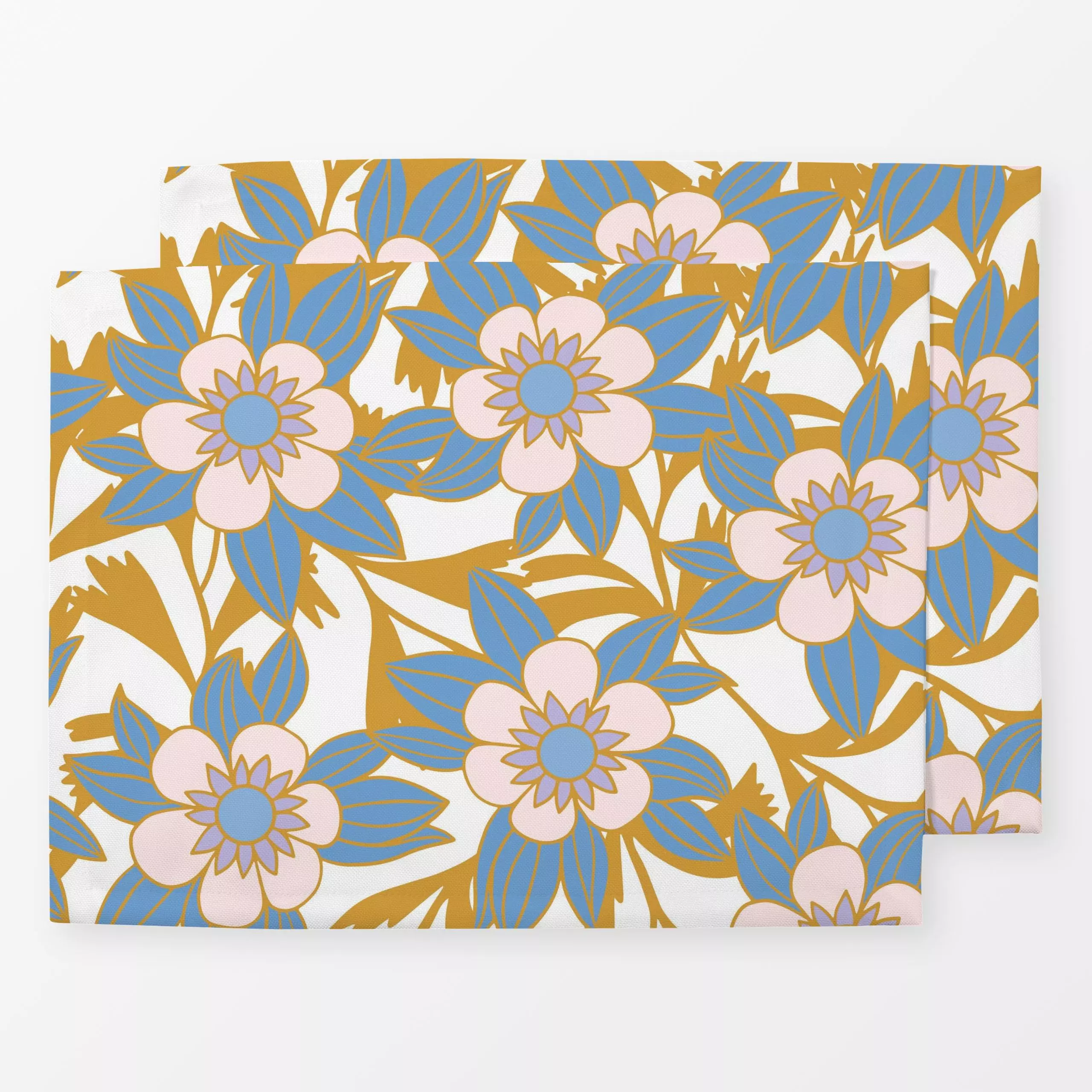 Tischset Azure Retro Bloom - Blumen & Florales, Pflanzen & Botanik - von „Sara Maria"; boho, Blumen, Retro, pink, florale, G...