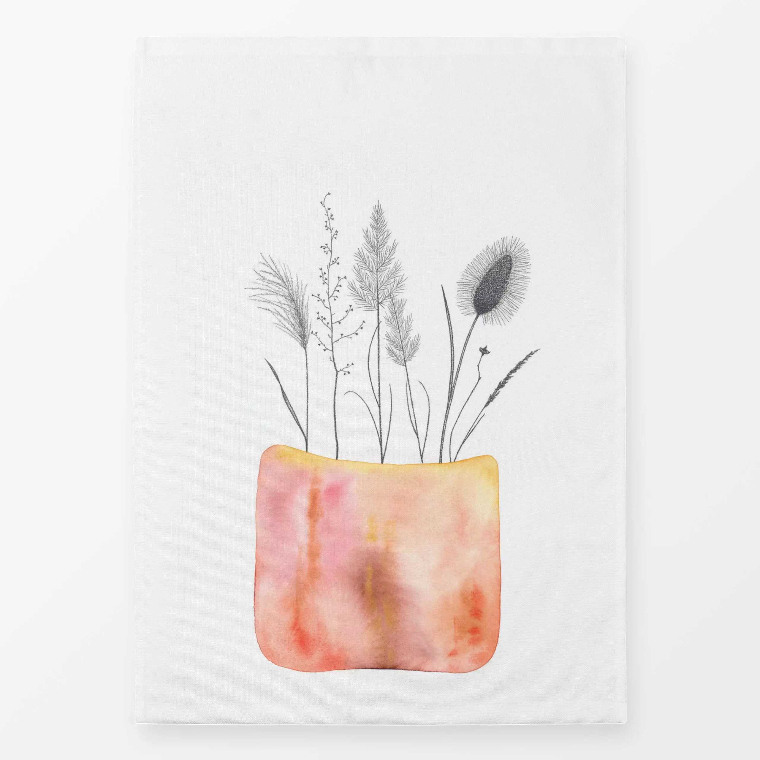 Geschirrtücher Vase mit Gräsern - Blumen & Florales - von „ask a duck"; Wildblumen, Vase, gelb, Gras, Koralle, deko