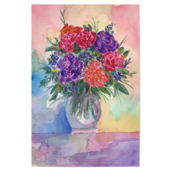 Poster 30x20 cm "Rote und Lila Rosen" artboxONE - Floral - Rosen,Blumen,Pflanzen,Bouquet,Strauß,Blumenstrauß,Wasserfarben,Blüten,Vase,Tisch