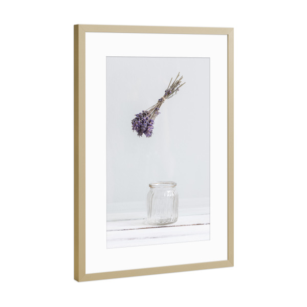 Poster mit Rahmen Gold "Lavendel - über Vase schwebend" artboxONE - Floral - Lavendel,Weiß,Kunst,Fotografie,Blumen,Natur