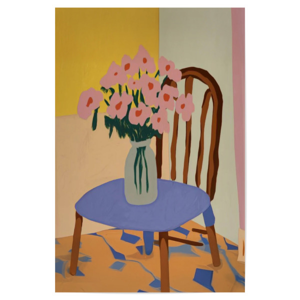 Poster 30x20 cm "Blumenvase auf dem Stuhl" artboxONE - Floral - Stuhl,Vase,Blumen,Aquarell,Ki,Malerei,Bunt