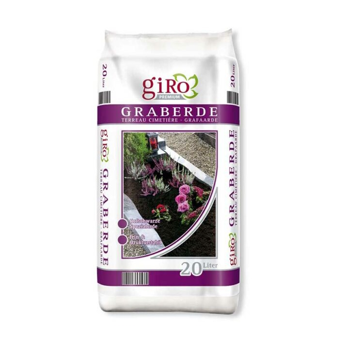 GiRo Premium Graberde 20 L, nährstoffreich, locker, humos, Pflanzerde, Blumenerde, für Grabgestaltung, Blumen, Pflanzen, Garten, Balkon