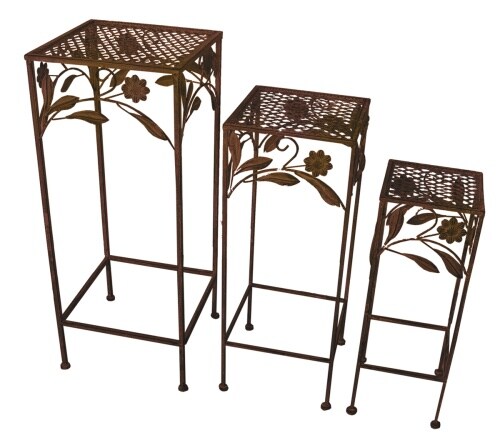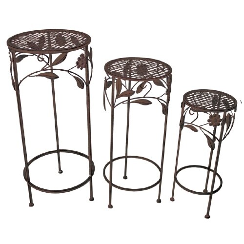 Lex Hocker Set 3tlg. Gartendeko Blumenhocker Eisenhocker Pflanzenständer Antik braun : Braun