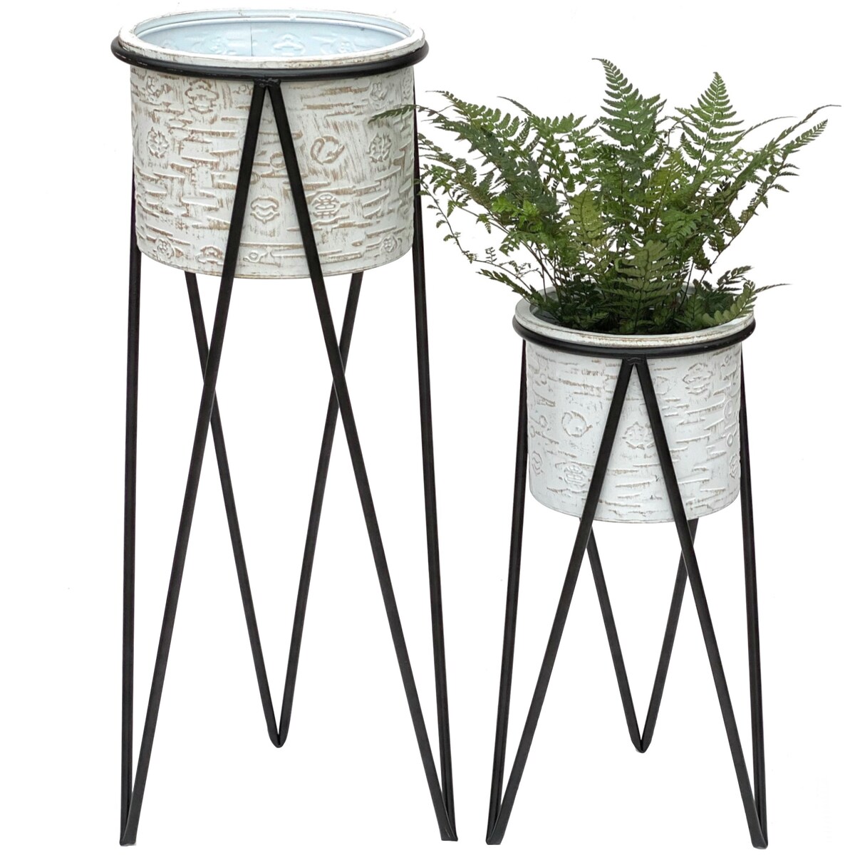 DanDiBo Blumenhocker Metall mit Topf Weiß Blumenständer 96259 2er Set Blumensäule Modern Pflanzenständer Pflanzenhocker