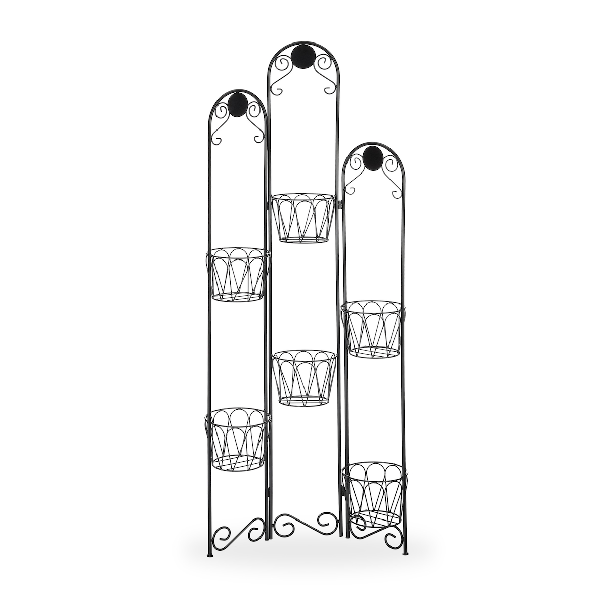 Relaxdays Blumenständer Metall, Paravent für Blumentöpfe, 6 Ablagen, Blumentreppe Indoor & Outdoor, H: 140 cm, schwarz
