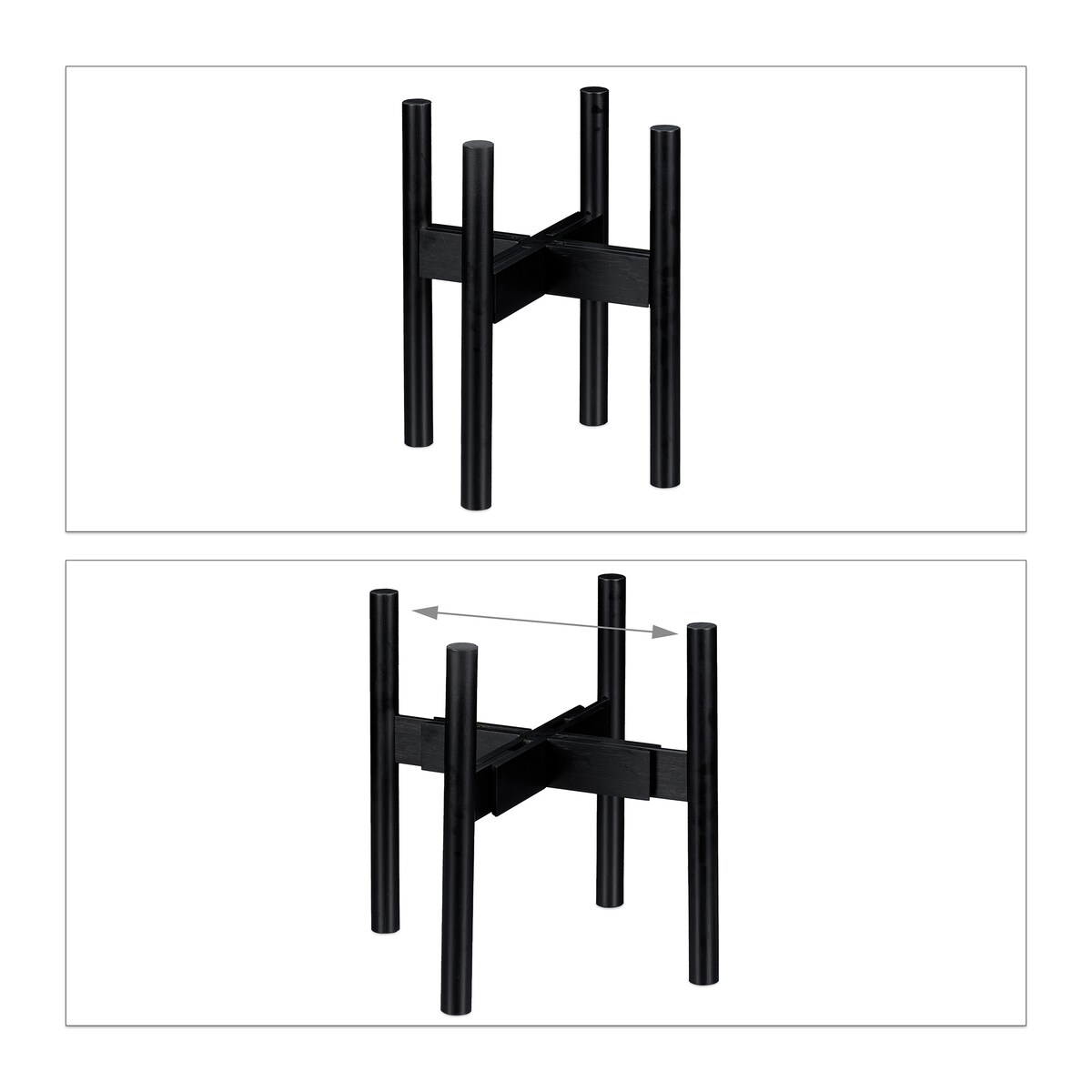 Relaxdays Blumenständer Bambus, individuell verstellbar, für Blumentöpfe bis 32 cm, Pflanzenständer, H: 35,5 cm, schwarz