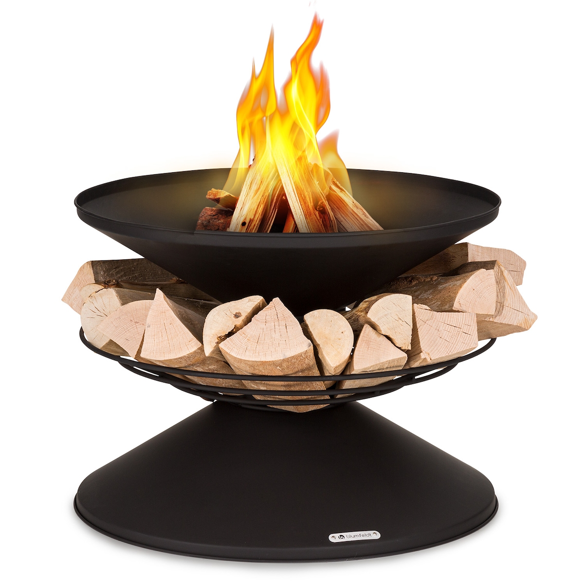 Blumfeldt Aguilera Feuerschale mit Grill Ø 65 cm Holzlager Stahl Schwarz