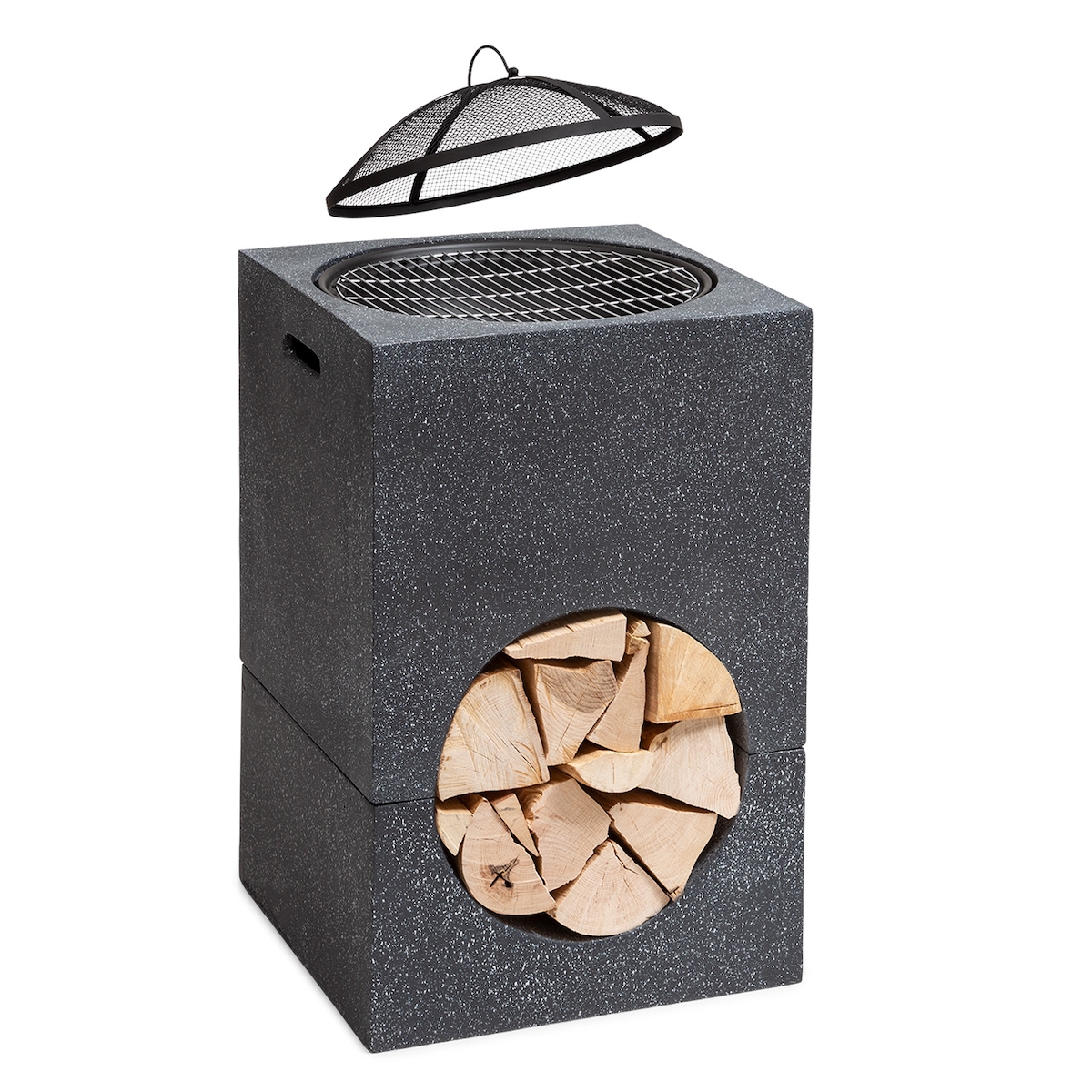 blumfeldt Monolith Feuerschale mit Grill MGO & Stahlschale inkl. Funkenschutz Dunkelgrauer Granit