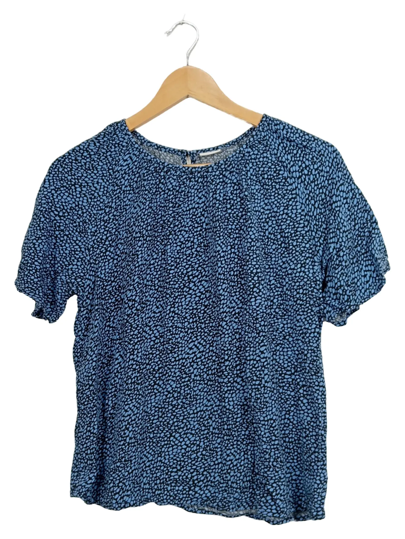 JACQUELINE DE YONG Bluse Damen Kurzarm Tierdruck Viskose Blau Gr. 36 S