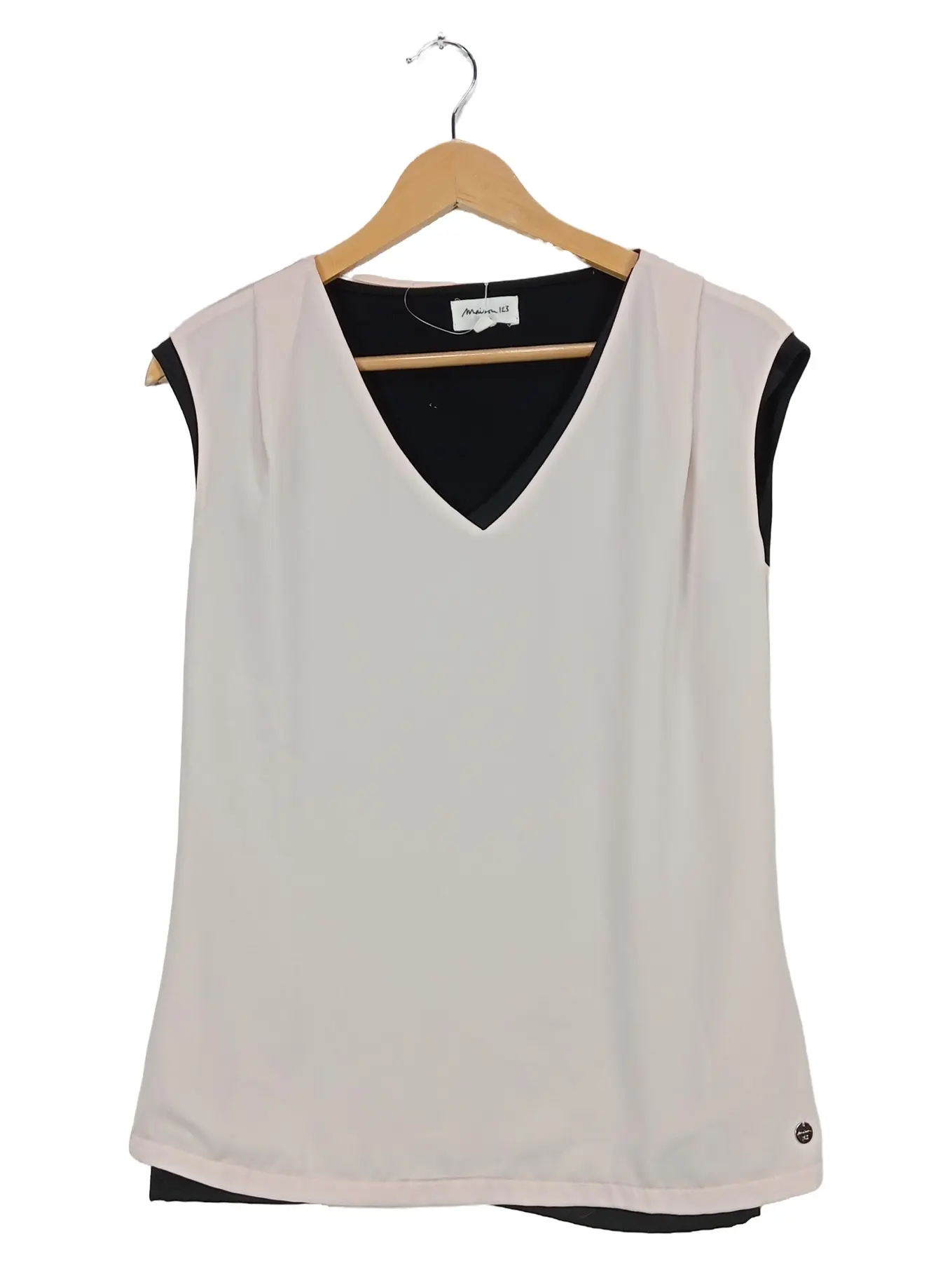MAISON 123 Damen Bluse Gr. 34 Beige Schwarz Elegant Ärmellos Top
