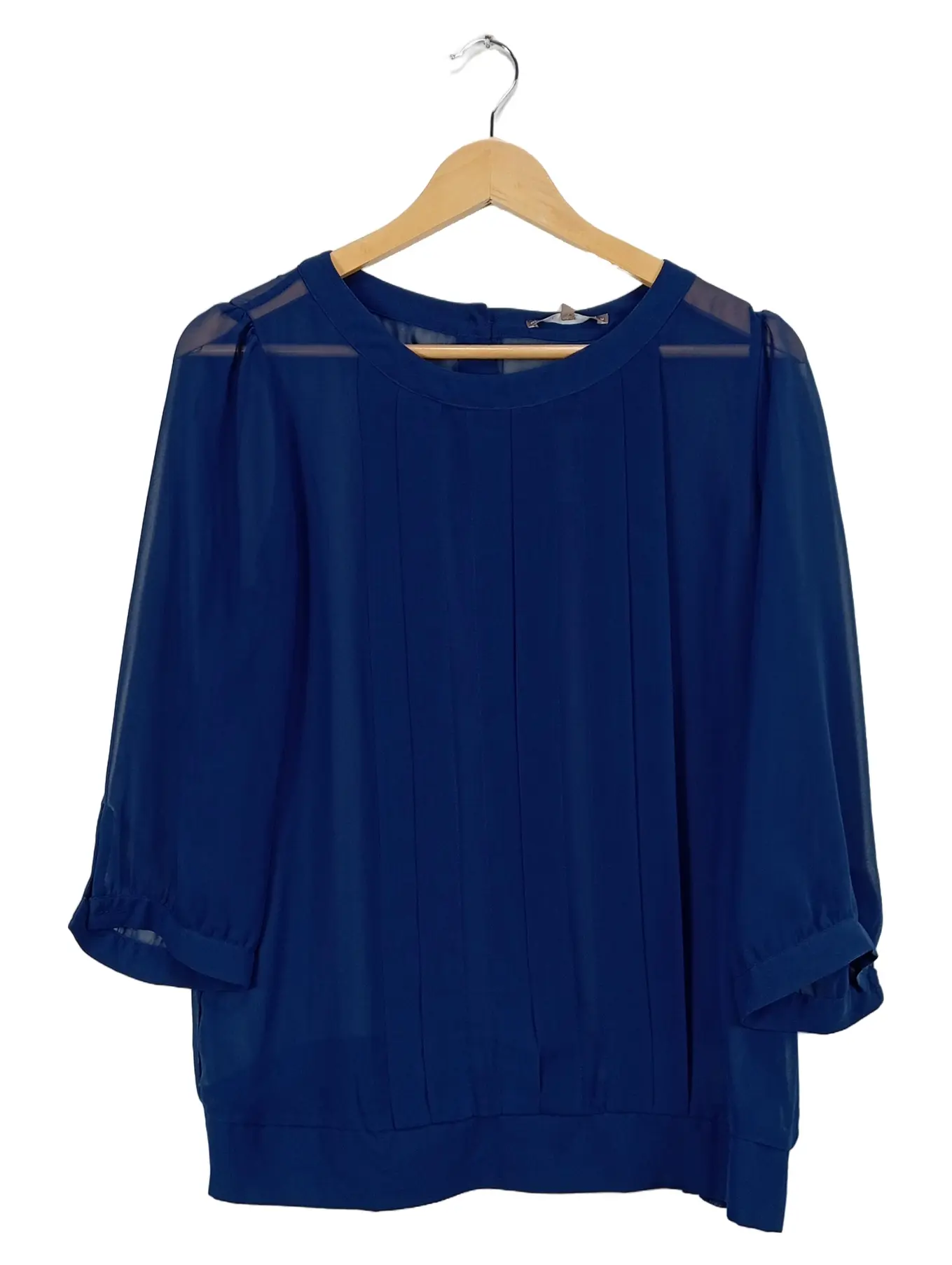 MARKENLOS Mint & Berry Damen Bluse Gr. 40 Blau Elegant Chiffon 3/4-Arm