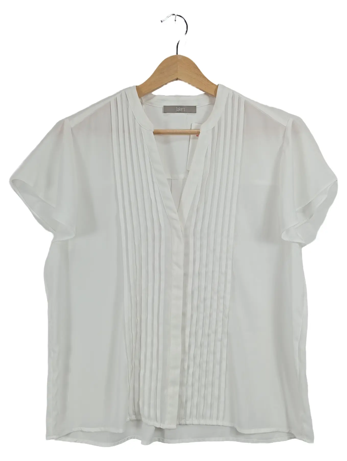 JAKE*S Damen Bluse Gr. 40 Weiß Plissee V-Ausschnitt Kurzarm Elegant