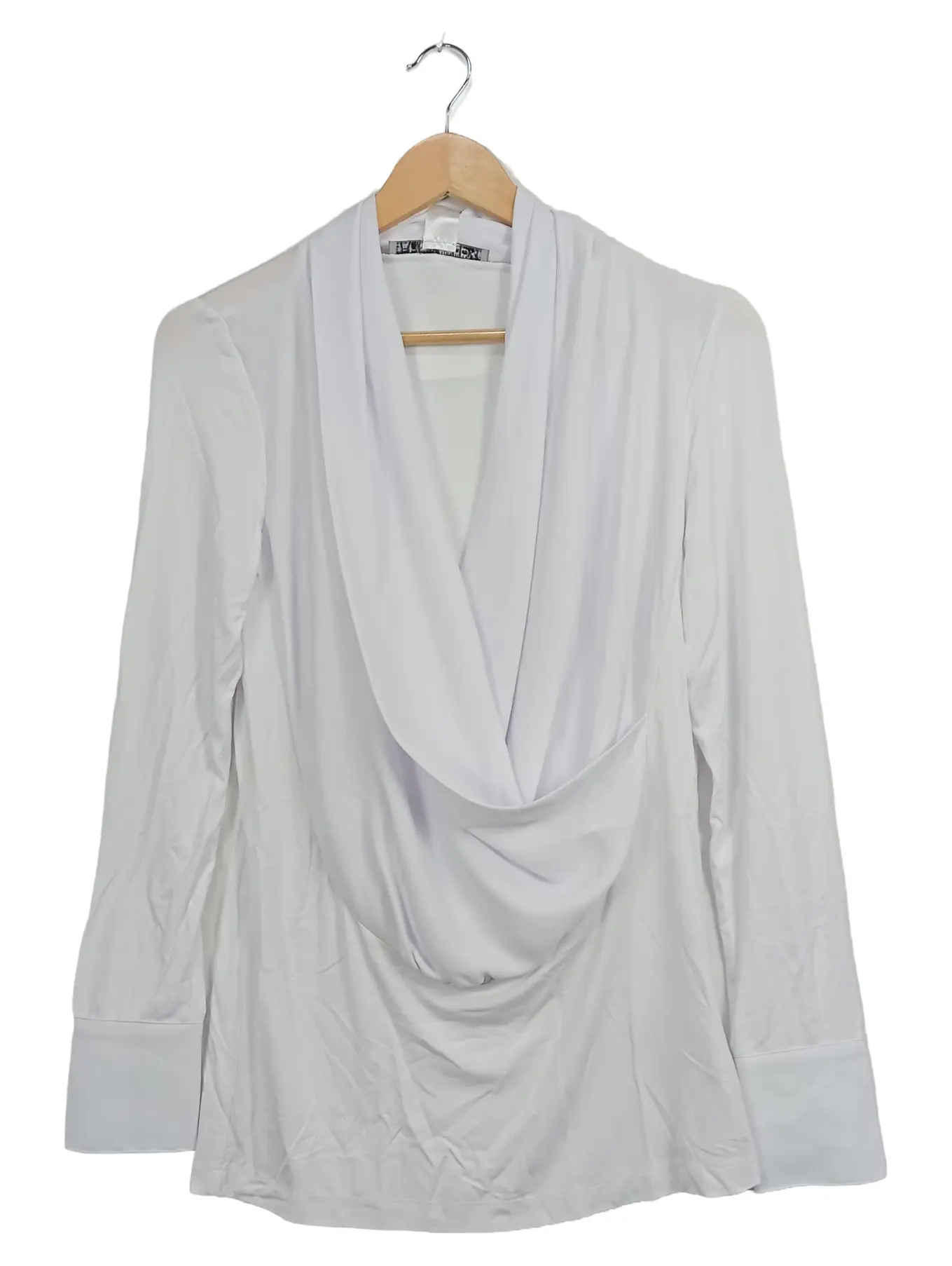 ASHLEY BROOKE Damen Bluse Wasserfallkragen Weiß Gr. 36 Langarm Elegant