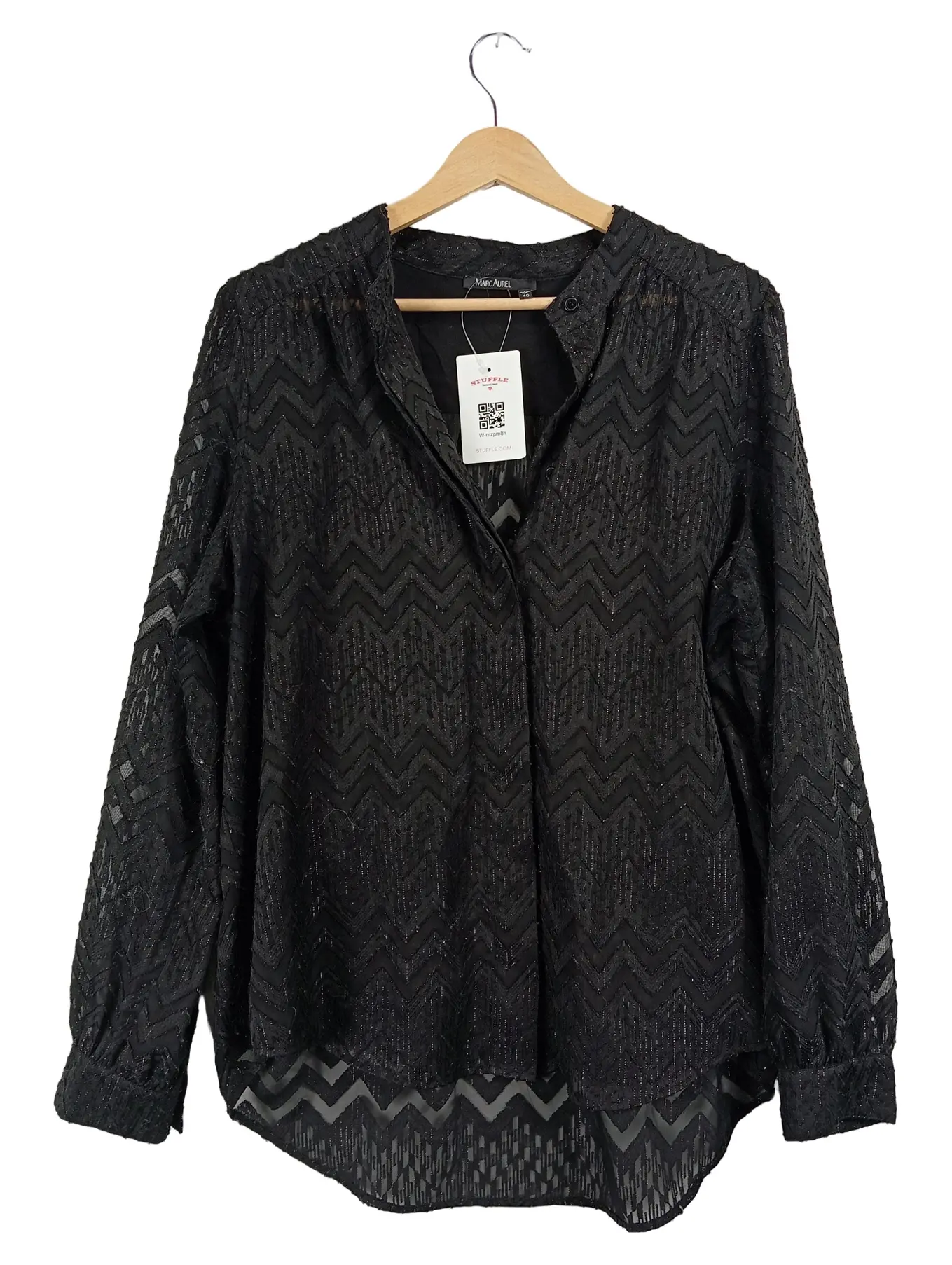 MARC AUREL Damen Bluse Gr. 40 Schwarz Elegant Zickzack Muster Langarm
