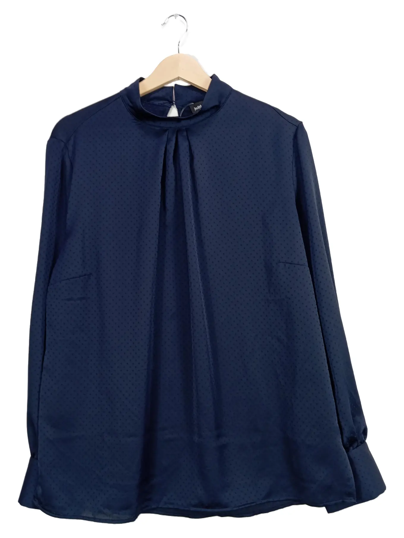 JUDITH WILLIAMS Damen Bluse Stehkragen Gr. 42 Blau Elegant Punkte Langarm