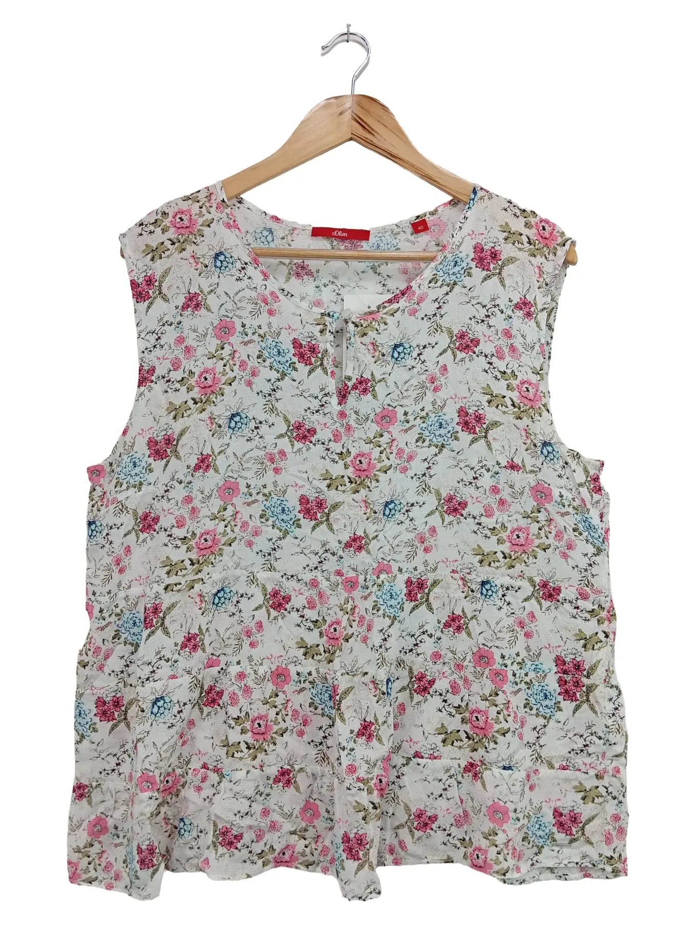 S.OLIVER Damen Bluse 40/L Weiß Blumenmuster Ärmellos Viskose Elegant