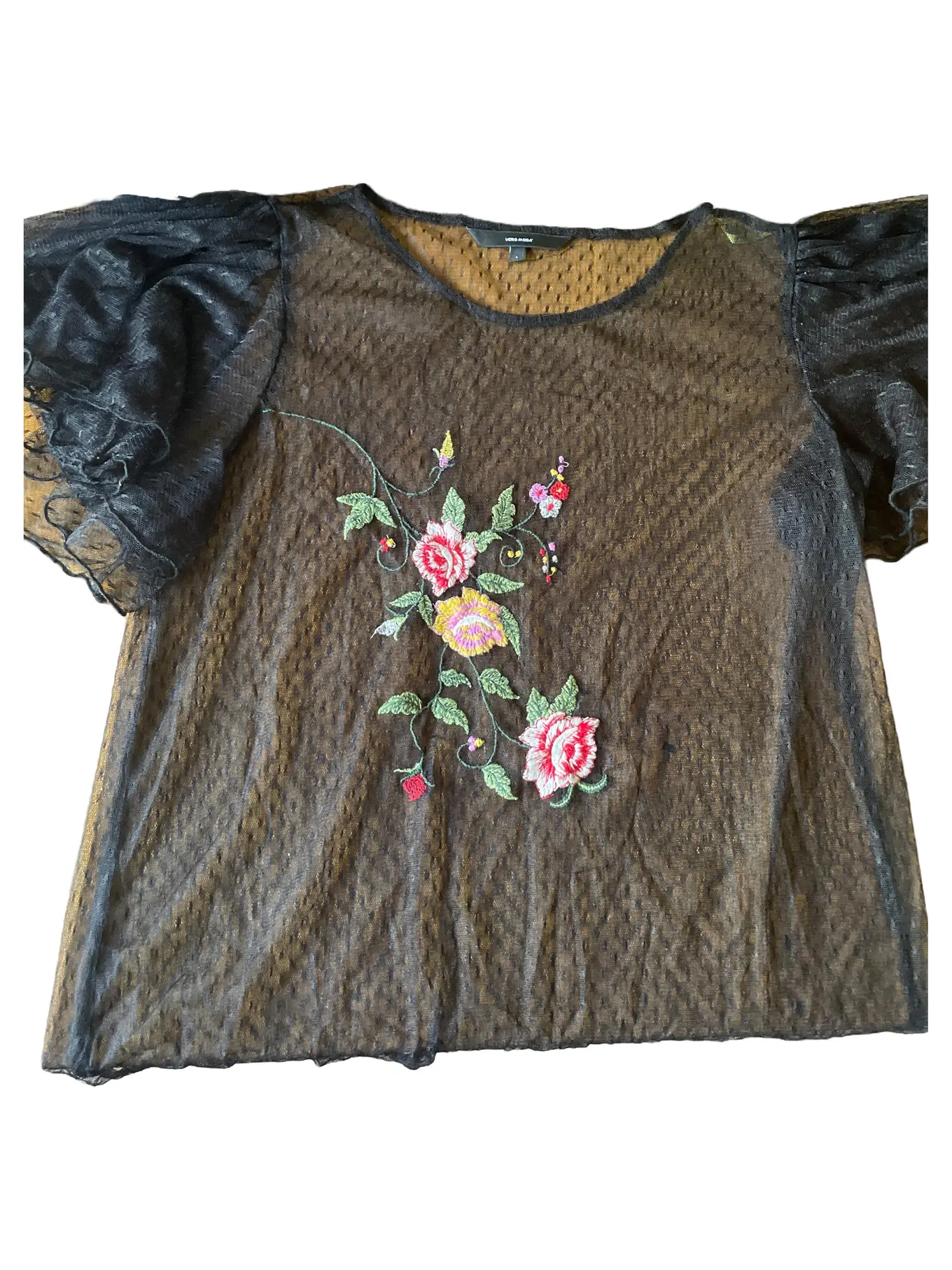 VERO MODA Damen Bluse Gr. 40/L Schwarz mit Blumenstickerei Elegant