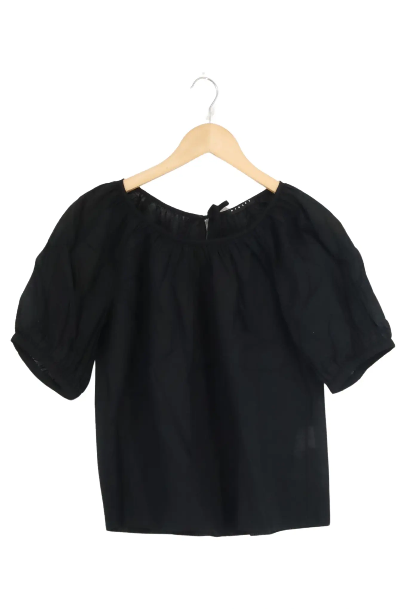 SISLEY Damen Bluse Schwarz Gr. 32/XS Elegant Klassisch Baumwolle Kurzarm