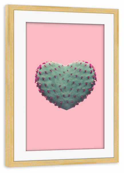Poster mit Rahmen kiefer "Cactus Love" artboxONE - Natur,Floral,Liebe,Festivals - Love,Liebe,Cactus,Desert,Greenery,Heart,Pink,Blush,Sweet,Pale,Girl