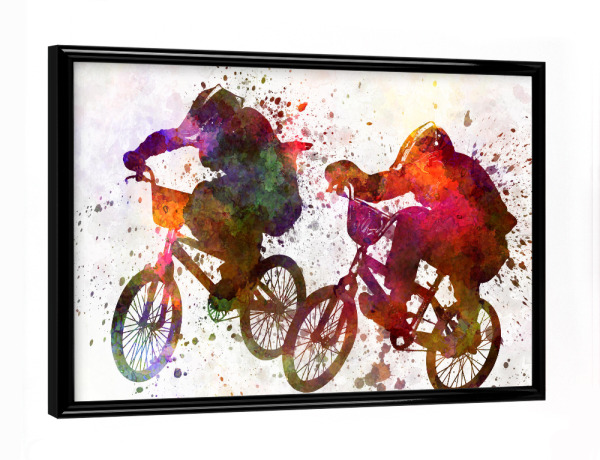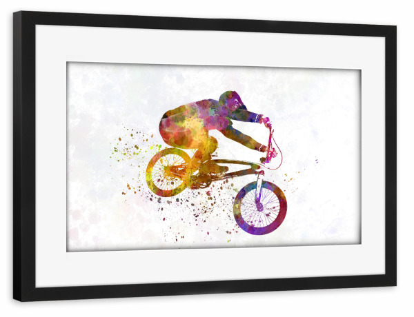 Poster mit Rahmen schwarz "Bmx cyclist in watercolor-e" artboxONE - Abstrakt,Sport