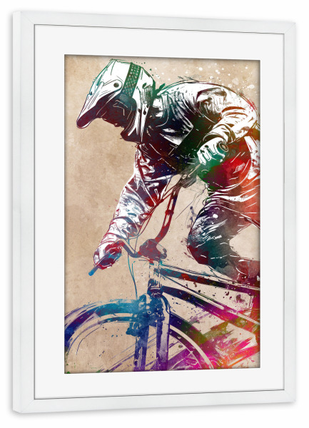 Poster mit Rahmen weiß "BMX Biker Sport Art D" artboxONE - Sport / Motorsport,Sport - Bmx,Fahrrad,Radfahren,Fahrrad,Biker,Radfahrer,Grafik