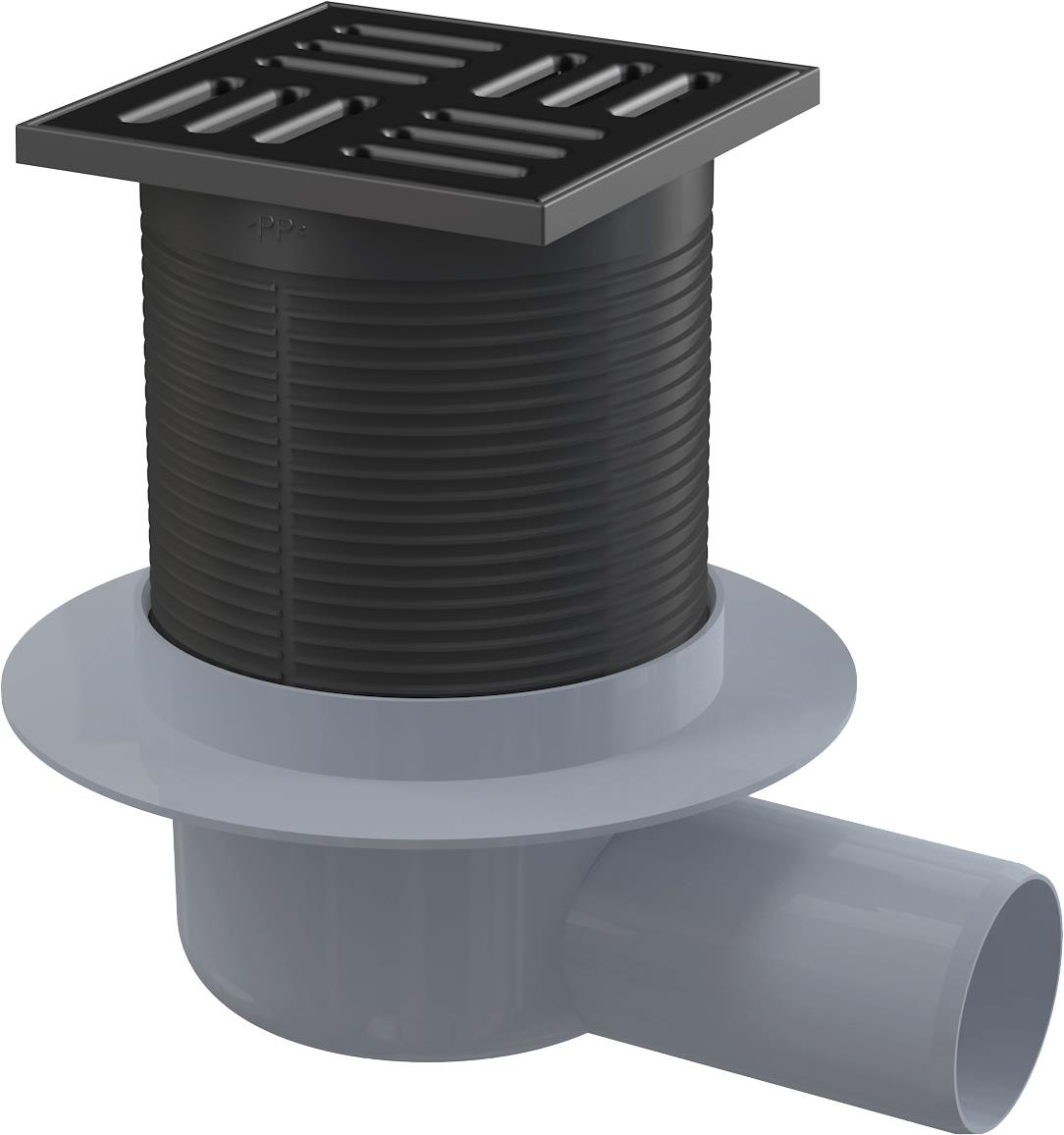 Alcadrain Bodenablauf 105 mm x 105 mm schwarz mit senkrechten Abgang DN 50 mm, Edelstahl Rost schwarz-matt, Kombi-Geruch