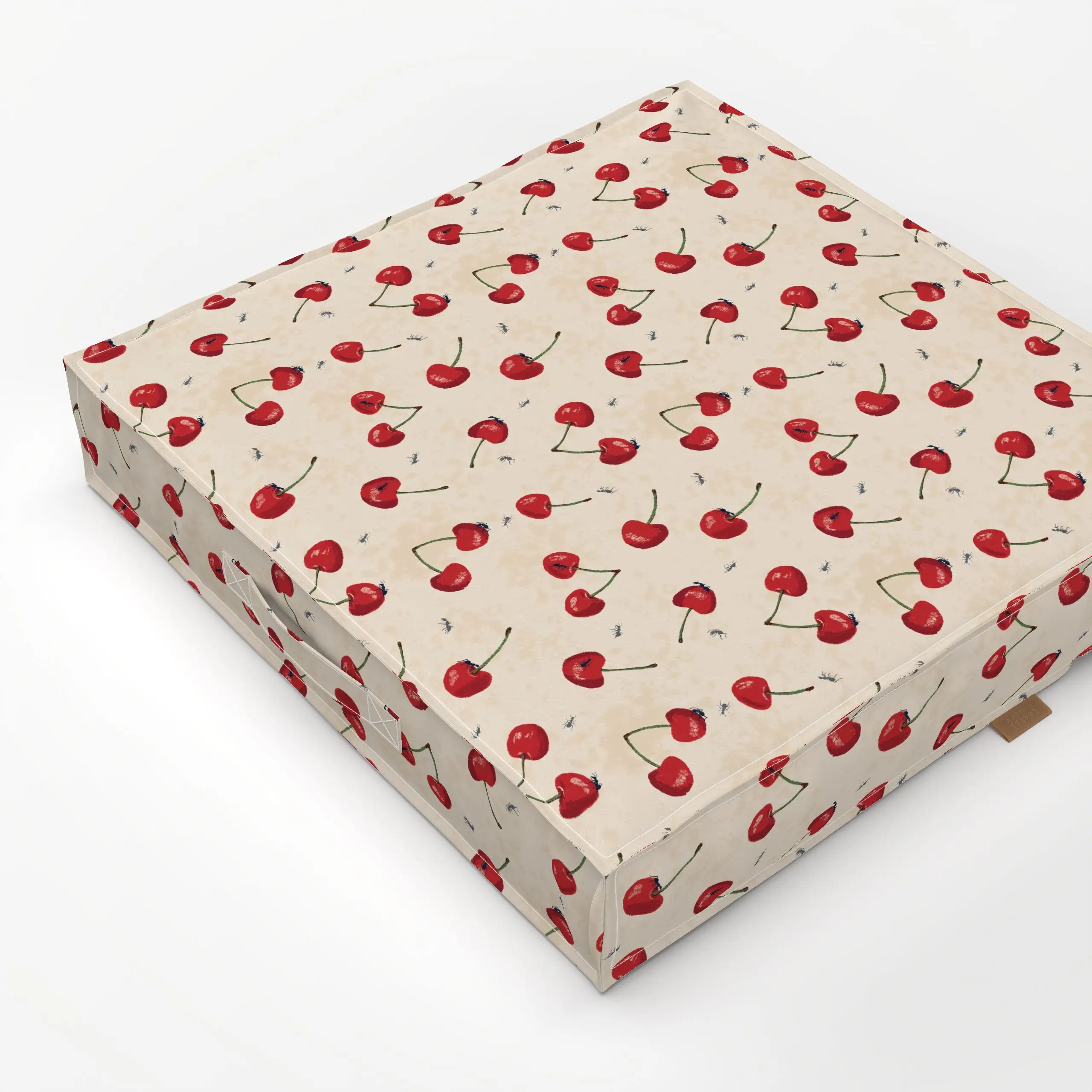 Bodenkissen Kirschen & Ameisen Muster - Sommer, Retro & Vintage, Früchte - von „Mareen Heinz"; Obst, Muster, Kirschen, Insek...