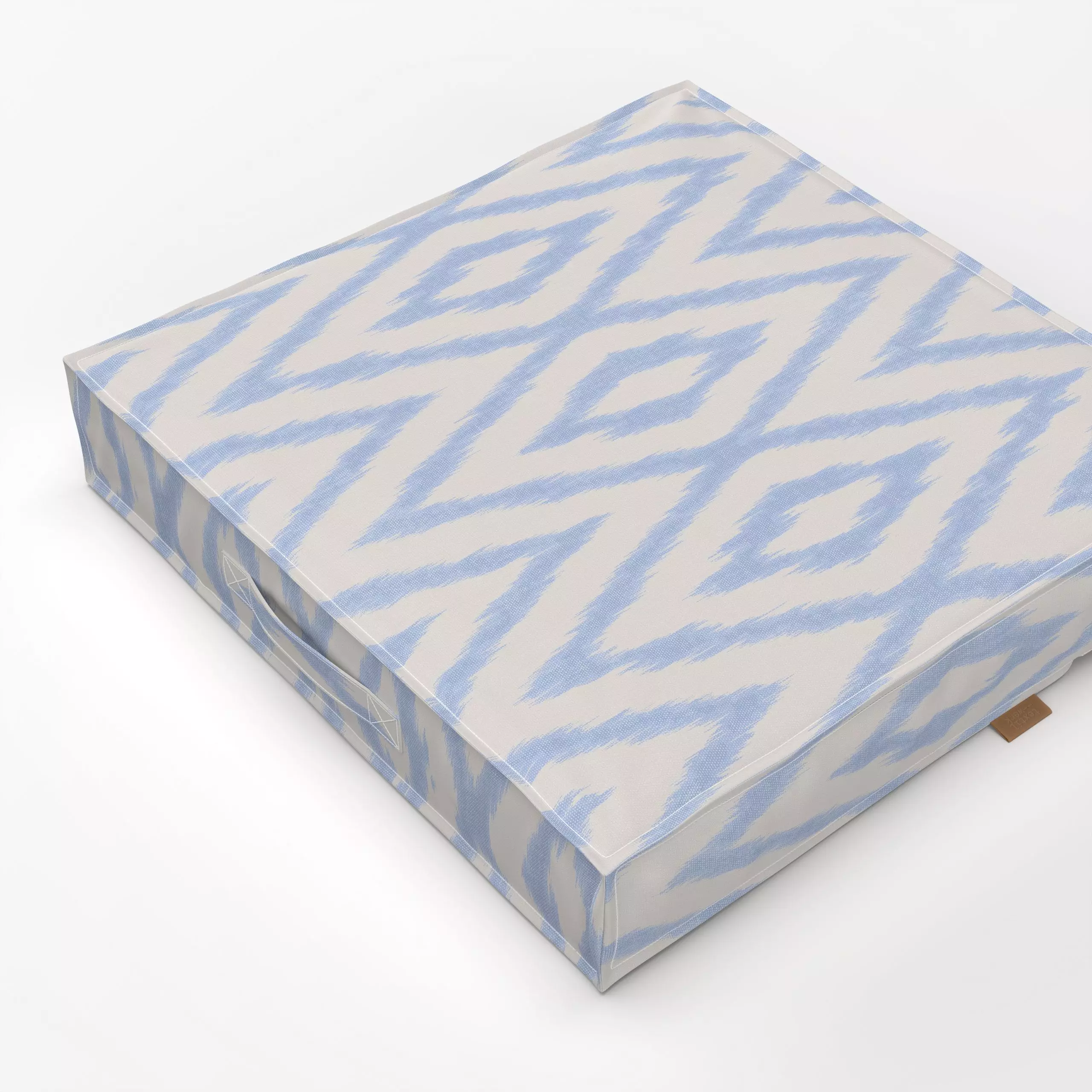 Bodenkissen Ikat Light Blue - Symbole & Muster, Reise - von „Studio Kesse"; marrakesch, marrokko, boho, blau, Ethno, Zickzac...