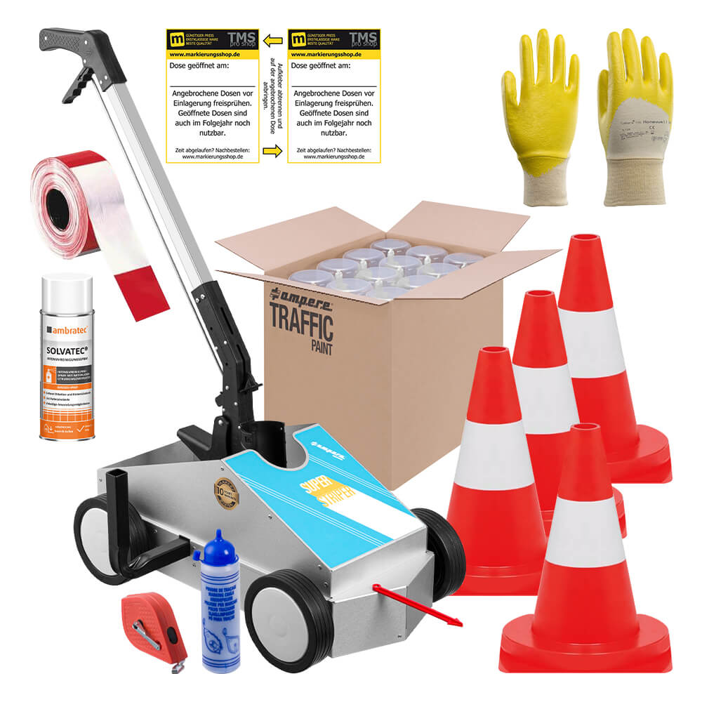 Markierung-Komplett-Set Typ L, weiß, für den Einsatz im Innen- und Außenbereich, Bodenmarkierungsgerät, Markierungswagen