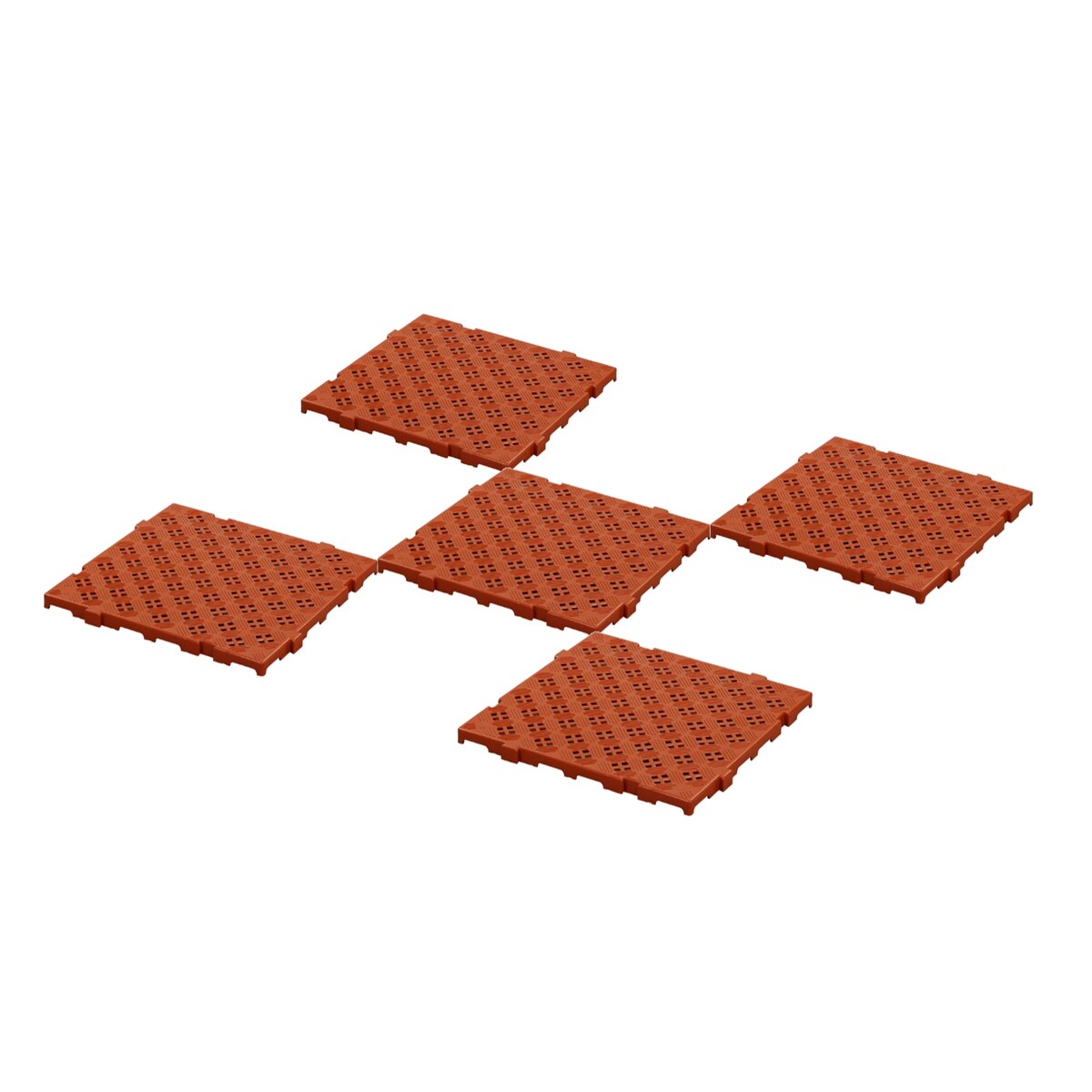 5 Stück Kunststoff Bodenrost Bodenplatte für Sauna/Garten/Poolbereich 500 x 500 x 25 mm Rot-Braun