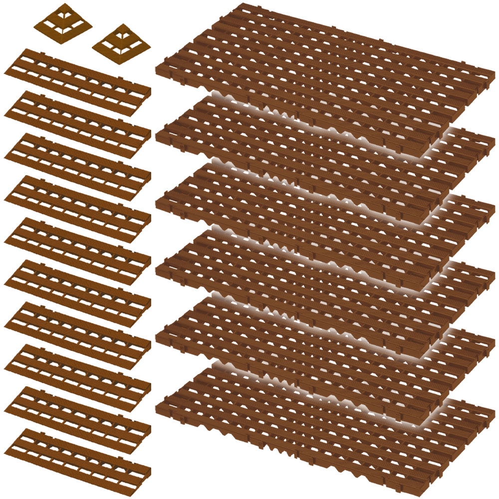 25-teiliges Set, 3,4 m² Bodenrost, braun, aus strapazierfähigem, lebensmittelechten PE-HD Kunststoff