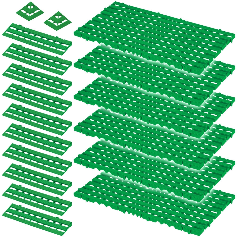 18-teiliges Set, 2,4 m² Bodenrost, grün, aus strapazierfähigem, lebensmittelechten PE-HD Kunststoff