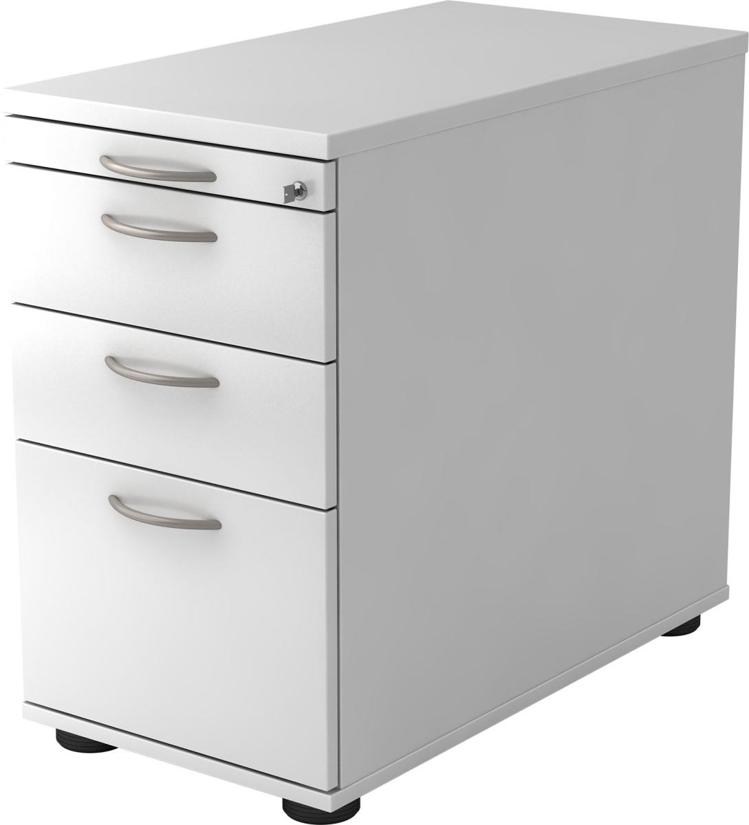Rollcontainer Anssi | Weiß | HxBxT 59x42,8x58cm | Bogengriff | 4 Schübe | Mit Schloss & Zentralverriegelung