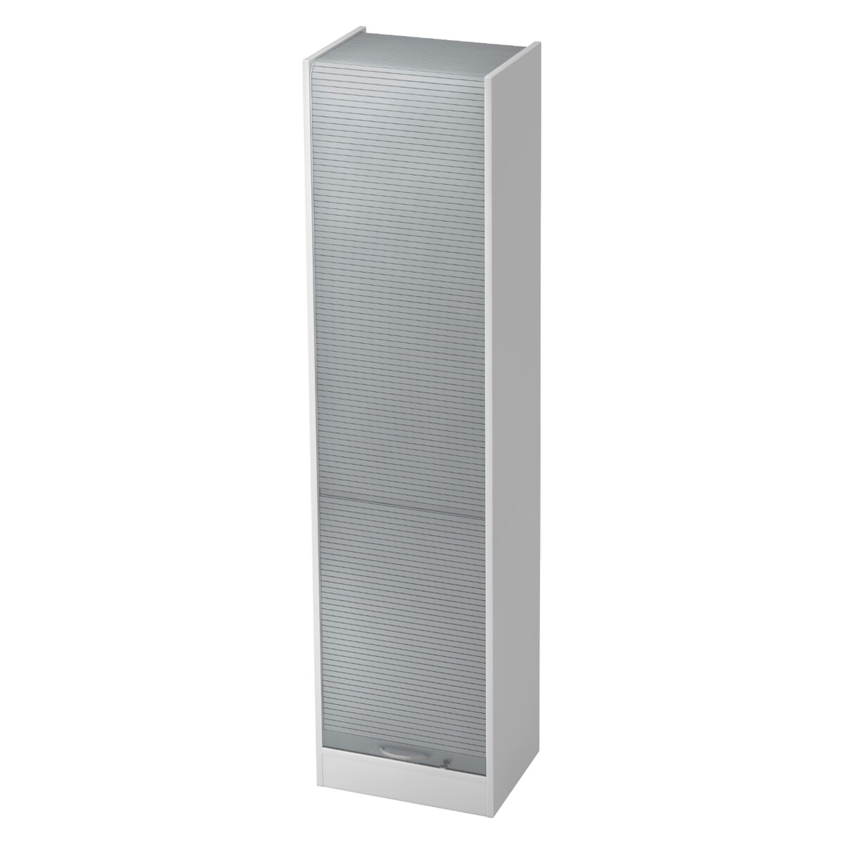 bümö Rollladenschrank in Weiß/Silber mit Bogengriff - Vertikal Jalousieschrank 50 cm breit, Aktenschrank abschließbar, Büroschrank für Ordner & Co.