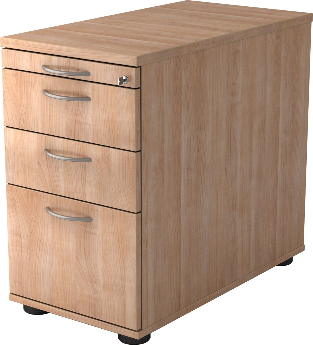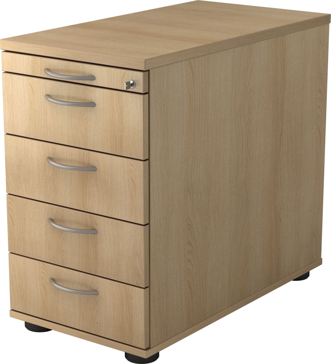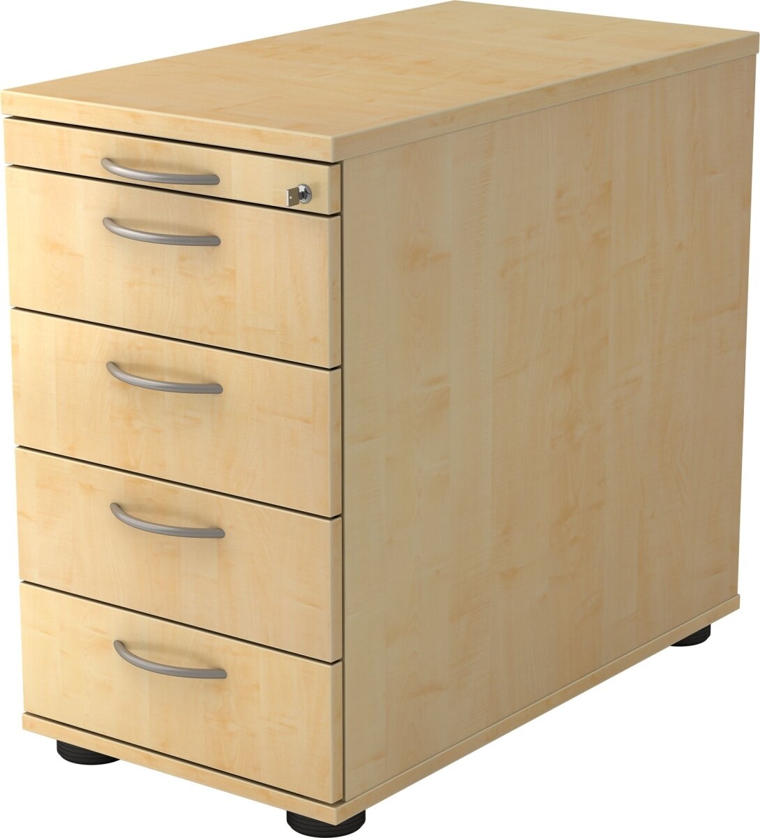 Standcontainer Eliel | Ahorn | HxBxT 76x42,8x80cm | Bogengriff | 4 Schübe | Mit Schloss & Zentralverriegelung