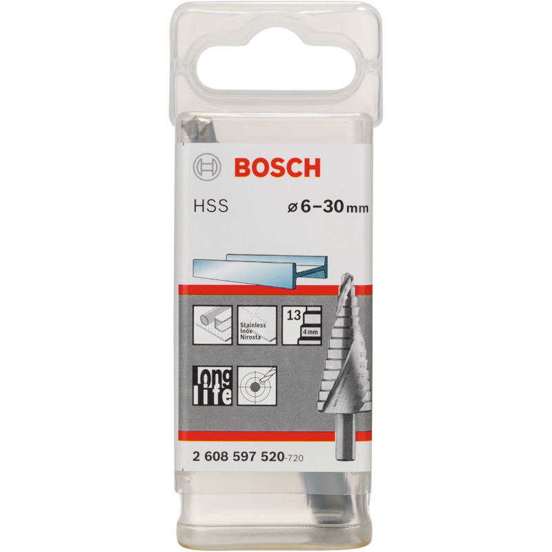 Bosch Professional HSS-Stufenbohrer, Ø 6mm - Ø 30mm Bohrer, 13 Stufen, mit