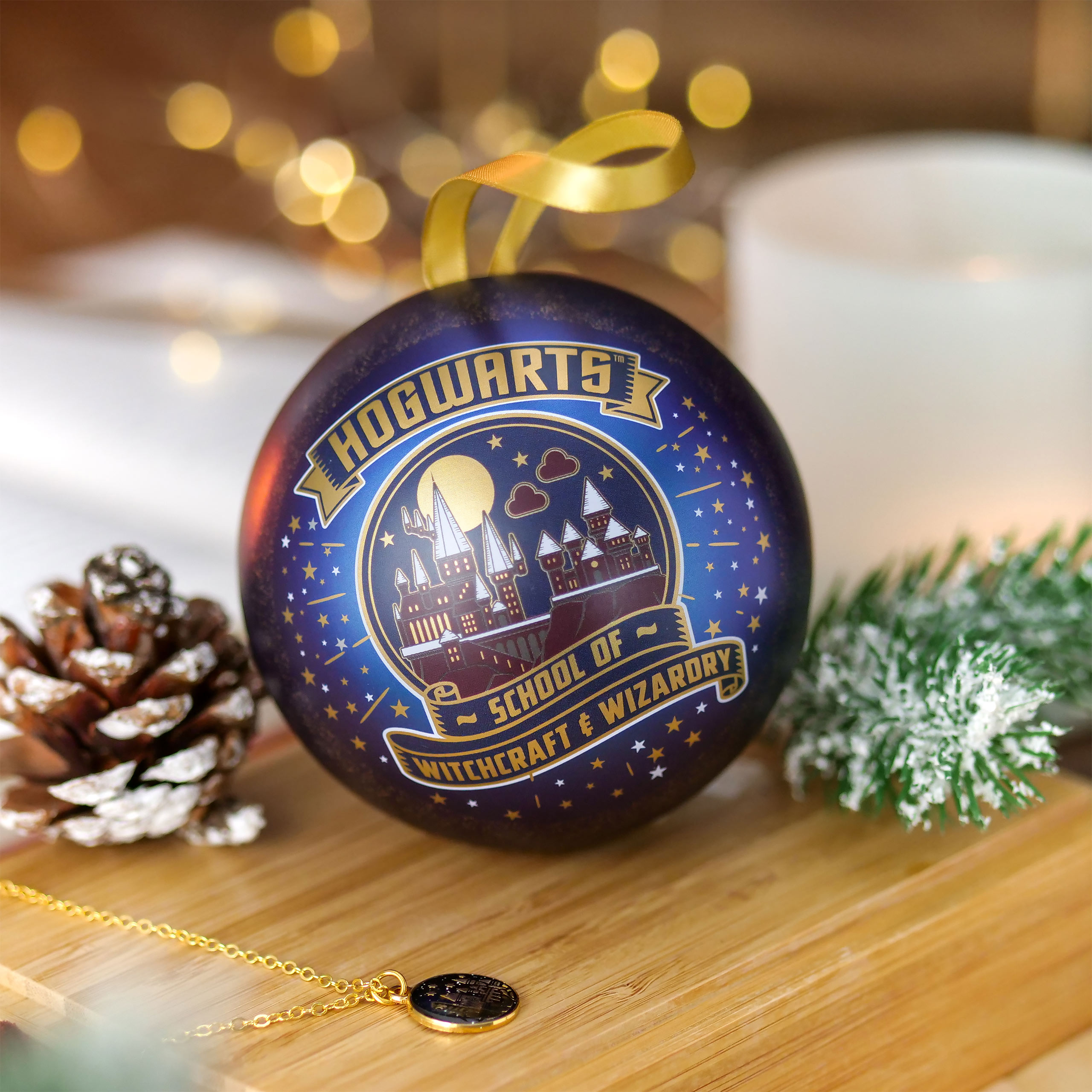 Harry Potter - Bola de Navidad de la Escuela de Magia y Hechicería de Hogwarts con Collar