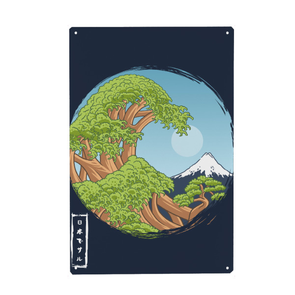 Metall Poster "Bonsai wave" artboxONE - Natur,Städte / Tokio - Bonsai,Fujiyama,Tree,Kanji,Japanese,Wave,Baum,Natur,Nature,Comic - Blechschild