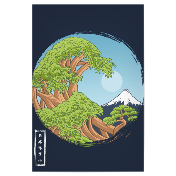 Poster "Bonsai wave" artboxONE - Natur,Städte / Tokio - Bonsai,Fujiyama,Tree,Kanji,Japanese,Wave,Baum,Natur,Nature,Comic