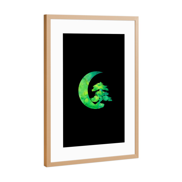 Poster mit Rahmen kiefer "Crescent Moon and Bonsai Tree" artboxONE - Natur,Fiktion