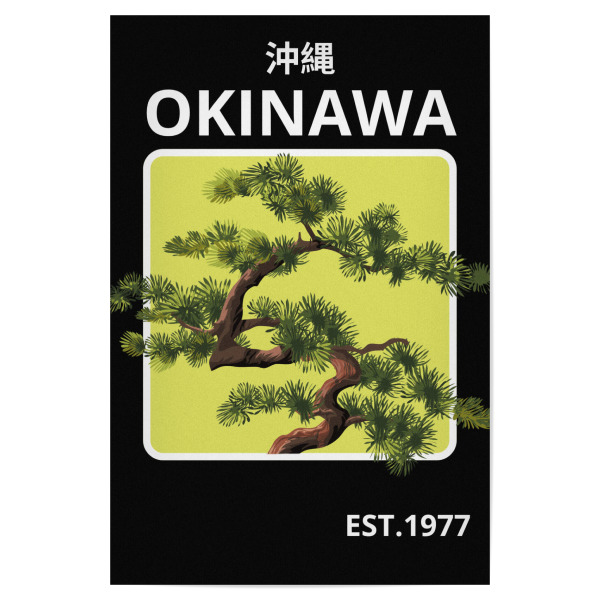 Poster 30x20 cm "Bonsai design" artboxONE - Natur - Okinawa,Tree,Lime background,Japanese,Nature,Branches,Green,Text,Bold,Cultural.