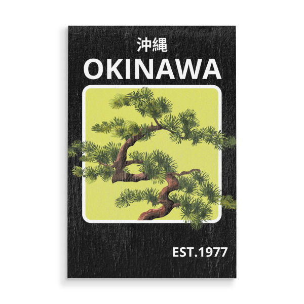 Holzbild "Bonsai design" artboxONE - Natur - Okinawa,Tree,Lime background,Japanese,Nature,Branches,Green,Text,Bold,Cultural.