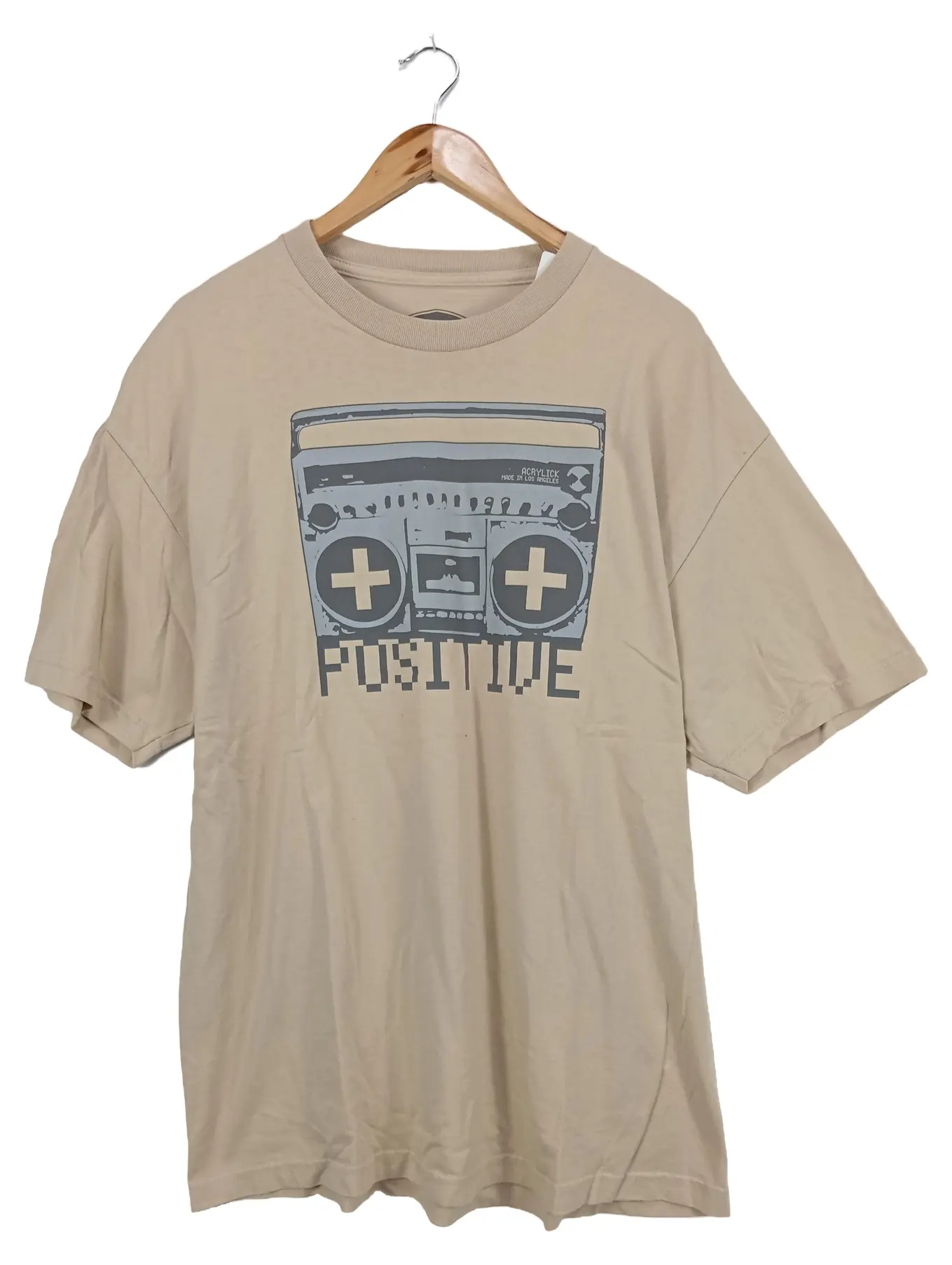 MARKENLOS Acrylick Herren T-Shirt Boombox Positive Print Beige Gr. L/40 Streetwear