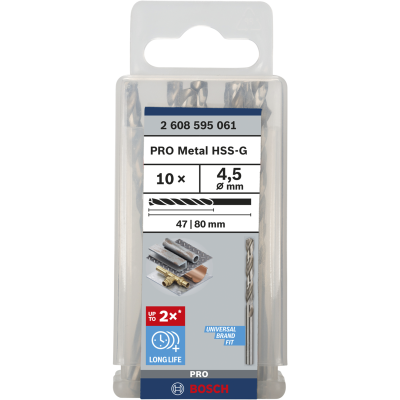 Bosch Professional PRO Metal HSS-G Spiralbohrer, Ø 4,5mm Bohrer, 10 Stück